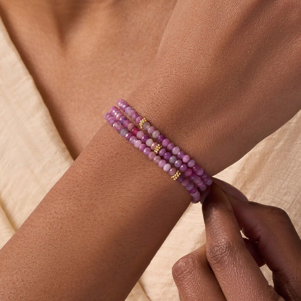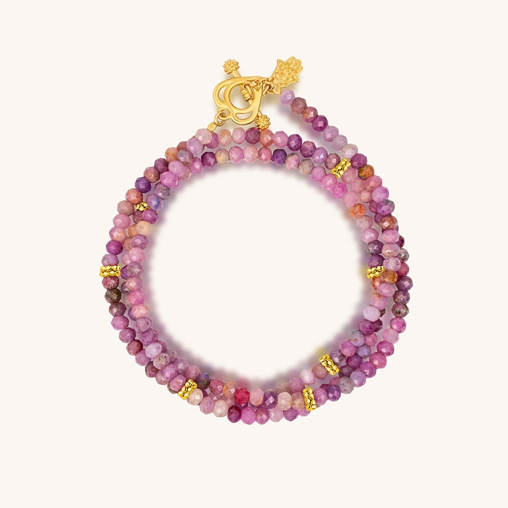 Let your passions fuel you, guiding you towards your highest potential. This handcrafted wrap bracelet is designed with dark red Rubies and an 18K Gold-plated Heart charm to encourage romance, vitality, and compassion. A symbol of pure affection, the “Bold Love Ruby Heart Wrap Bracelet” is perfect for gifting yourself or someone special. Wear to live a heart-centered life.